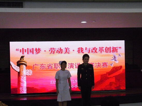 9月3日上午,由廣東省總工會(huì)主辦的“中國(guó)夢·勞動美·我與改革創新”主題演講比賽決賽在廣東工會(huì)大廈舉行,省總工會(huì)黨組副書記、副主席郭澤宇,省總工會(huì)常務副主席陳宗文,省委宣傳部宣教處處長(cháng)吳祖清,中國(guó)演講協會(huì)秘書長(cháng)、廣東演講學(xué)會(huì)創會(huì)會(huì)長(cháng)孫朝陽出席活動,全省來自各行各業的28名代表參加了本次比賽。我院楊靜同志經(jīng)過(guò)惠州市總工會(huì)的選拔,代表惠州市參賽,她演講的題目是《我們像玉蘭花默默吐芬芳》,她把在平凡的工作崗位上默默奉獻、不求名利的護理工作者比喻成(chéng)把芳香獻給他人卻不張揚的白玉蘭,她用真實、感人的先進(jìn)人物事(shì)例,把護理工作的平凡而偉大、把尊重生命、融合道(dào)義與責任的愛帶給患者的護理工作者無私的奉獻呈現在每位觀衆面(miàn)前,楊靜的演講生動、流暢,姿态自然,表現力強,感染了在場的每位觀衆及每位評委,讓大家對(duì)護理工作有了新的認識。最後(hòu),楊靜以97.8分的高分榮獲本次大賽一等獎,惠州市總工會(huì)榮獲優秀組織獎。