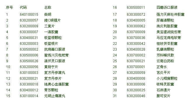 惠陽區人民醫院社會(huì)基本醫保門診藥品目錄(中成(chéng)藥)