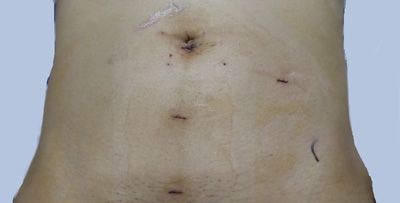 傳統的疝手術切口           腹腔鏡疝修補術