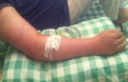 1、 傷口、手臂:出現紅、腫、熱、痛、活動障礙 。
