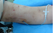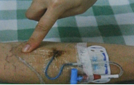 2、 穿刺口處有滲血、滲液、分泌物、化膿等。