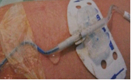 假如導管斷裂或破損,在導管斷裂處上方或靠近穿刺點處將(jiāng)導管折起(qǐ),并用膠布固定。打電話到醫院并到醫院進(jìn)一步處理,將(jiāng)斷裂部分的導管一同帶到醫院。