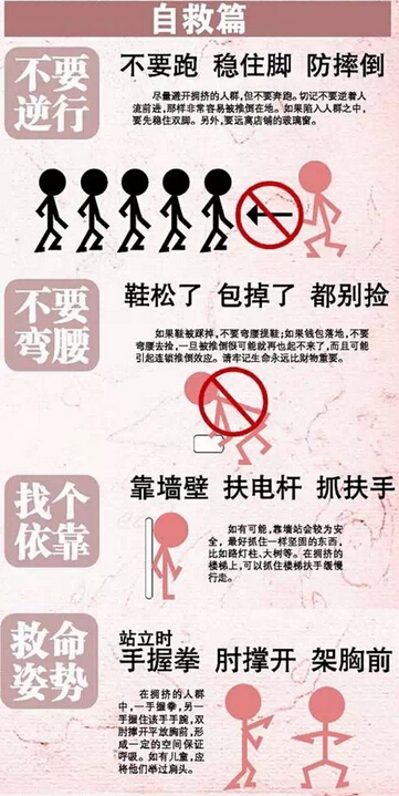 在擁擠的人群中,千萬不能(néng)被(bèi)絆倒,避免自己成(chéng)爲踩踏事(shì)件的誘發(fā)因素。