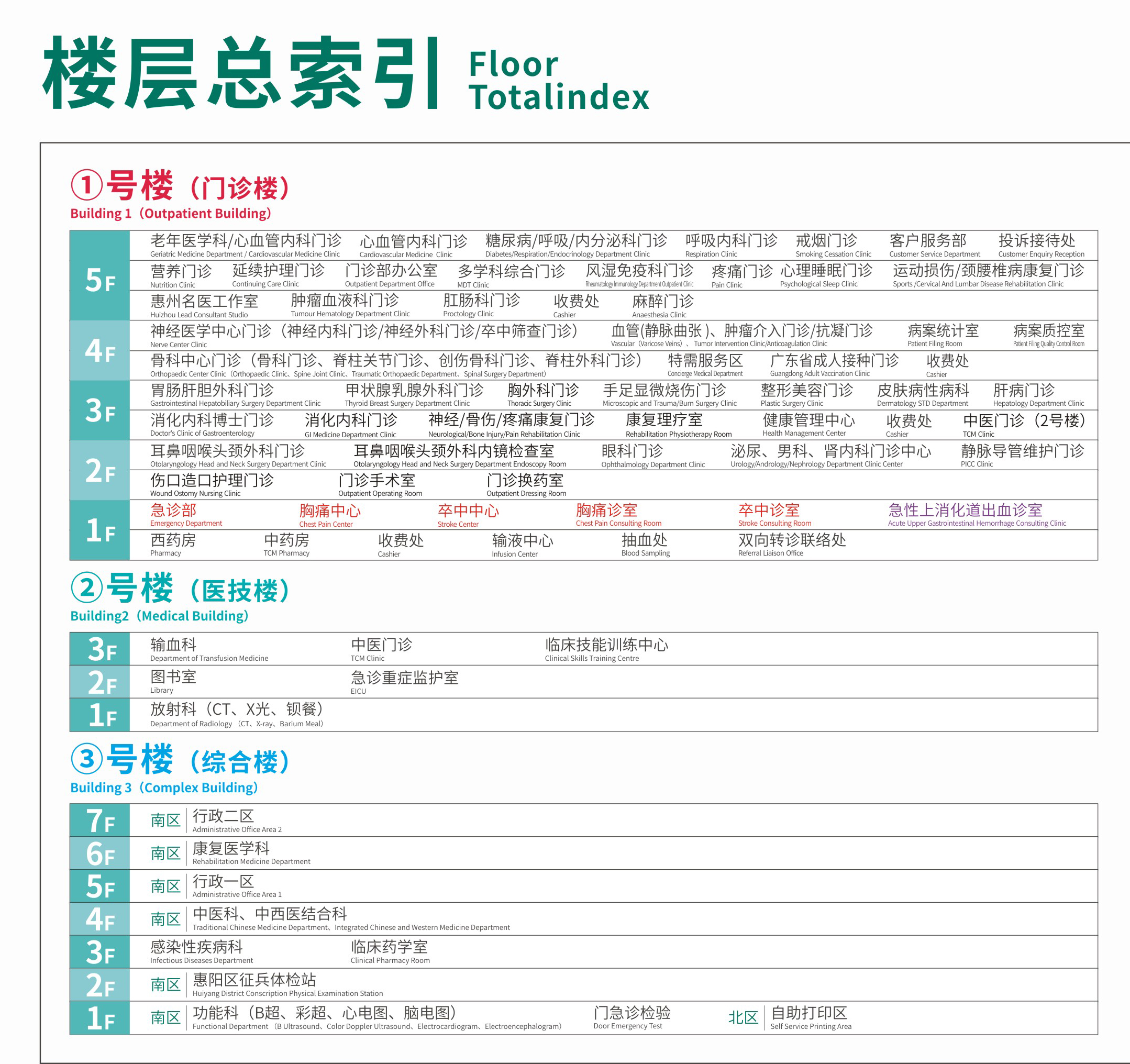醫院總平面(miàn)圖及各樓層索引