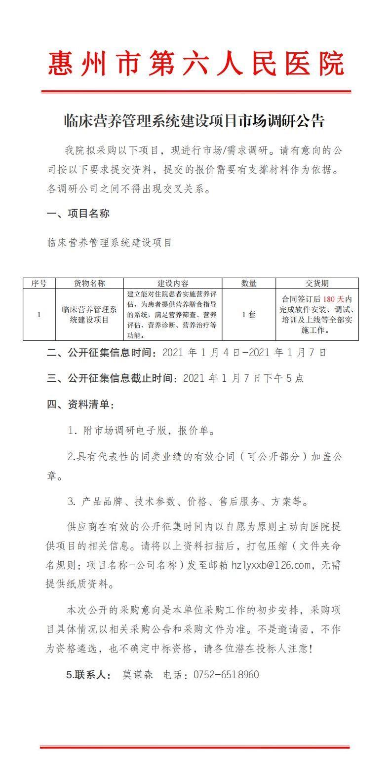 附件:惠州市第六人民醫院市場調研表(點擊下載)