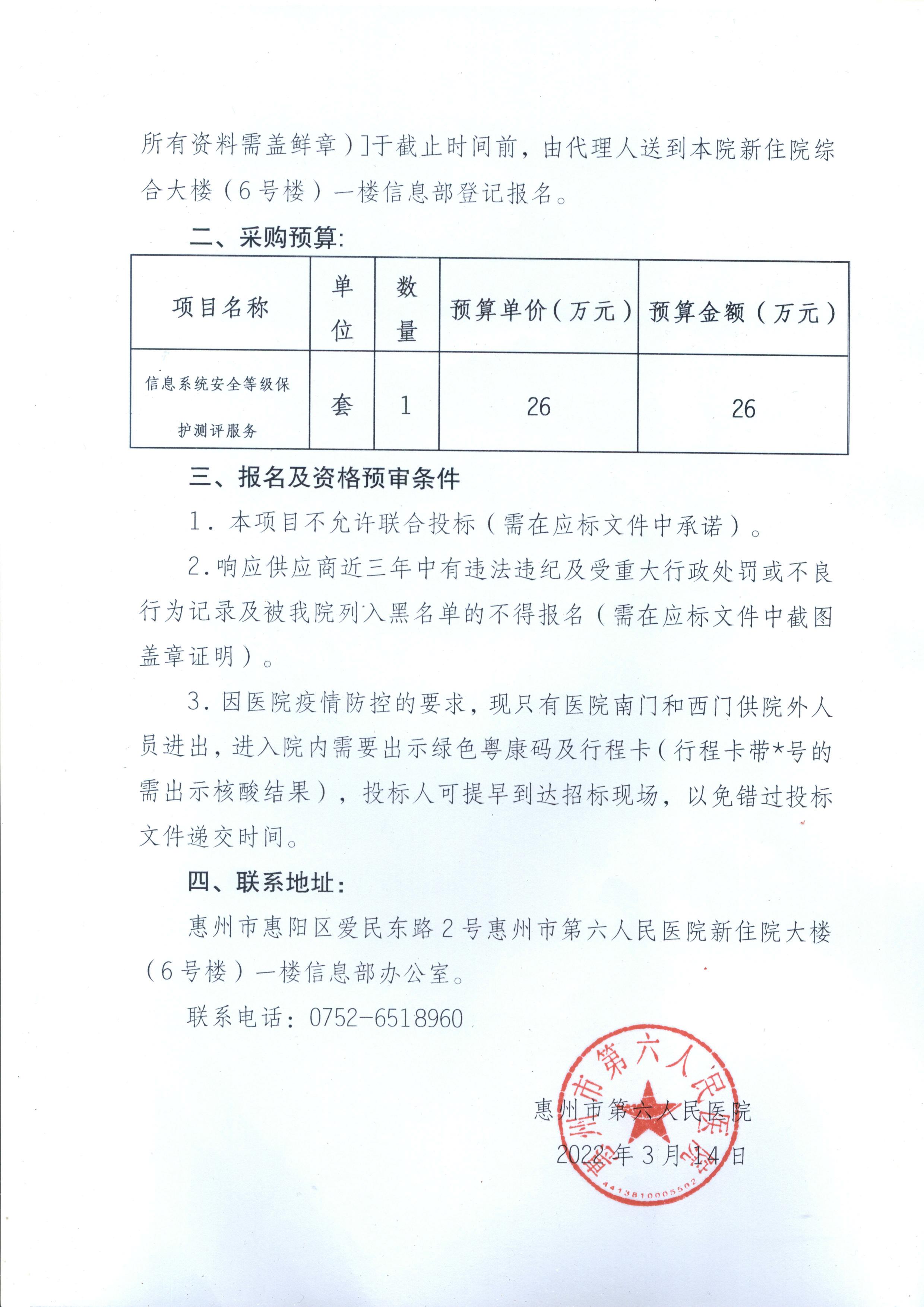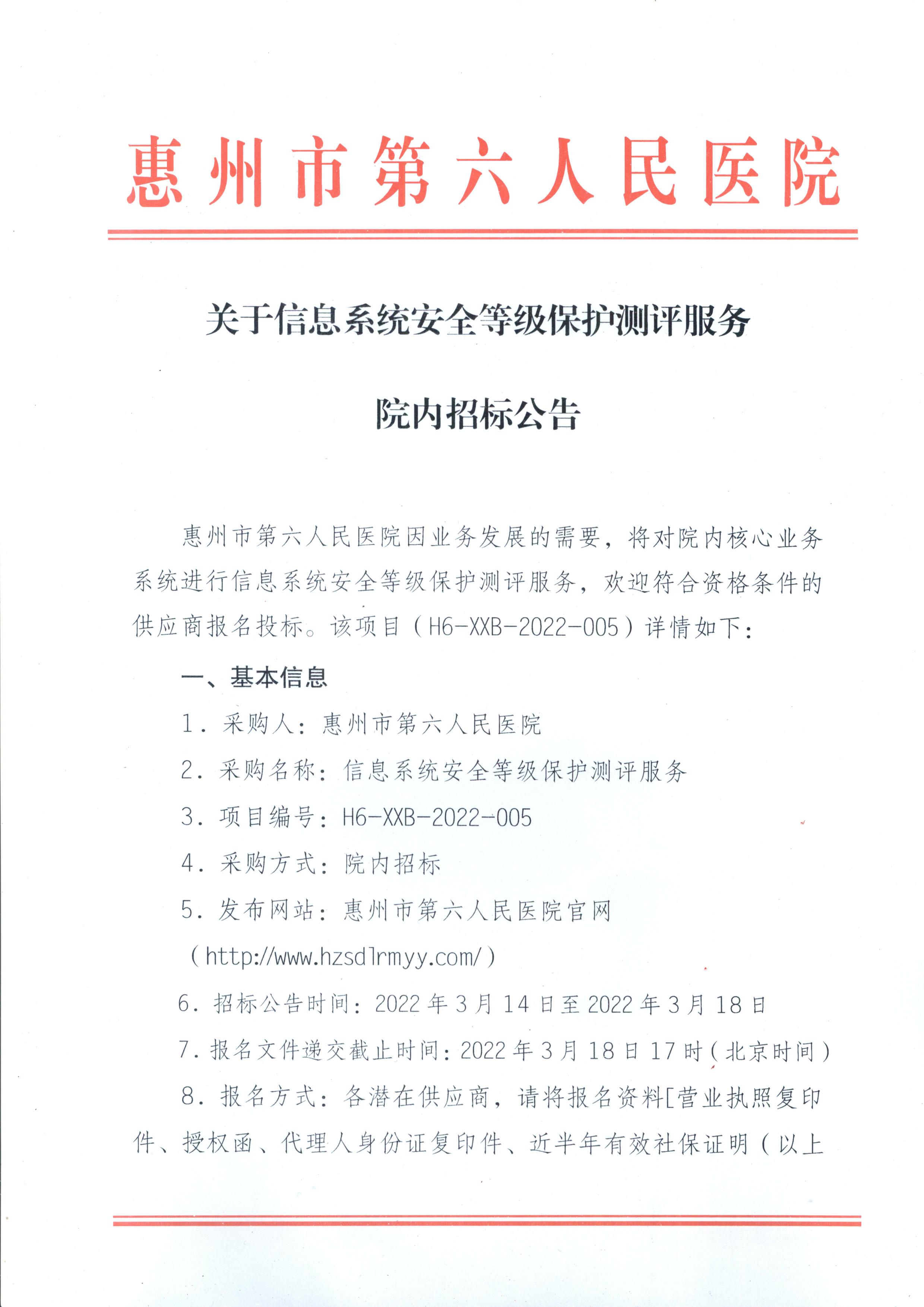 附件1:信息系統安全等級保護測評服務院内招标書(點擊下載附件)
