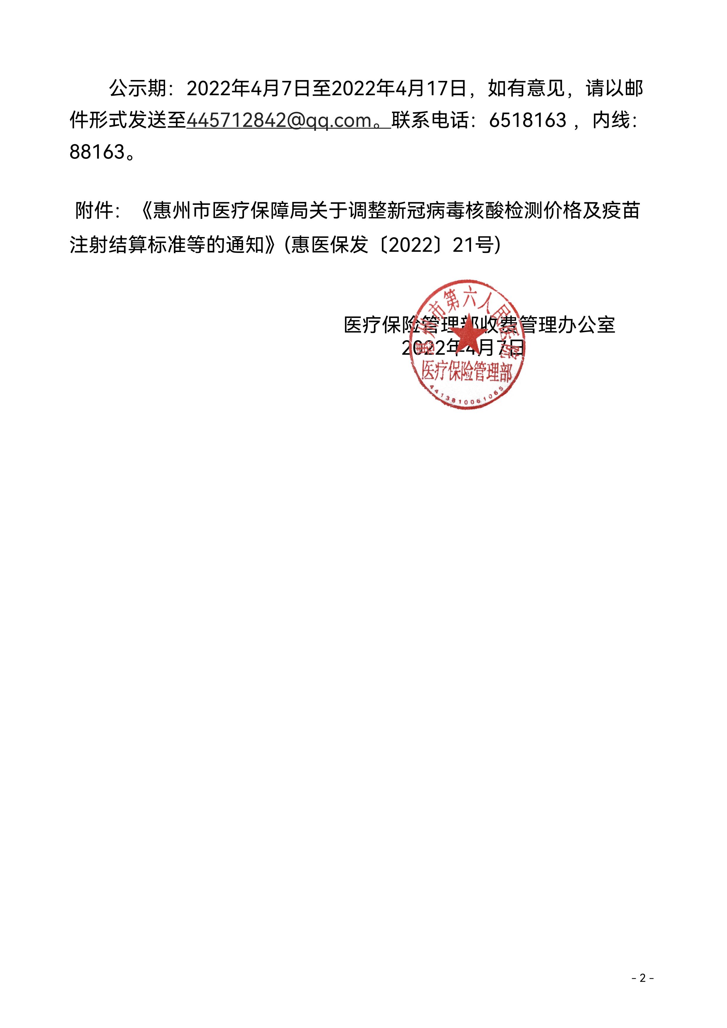 附件:惠州市醫療保障局關于調整新冠病毒核酸檢測價格及疫苗注射結算标準等的通知(點擊下載附件)