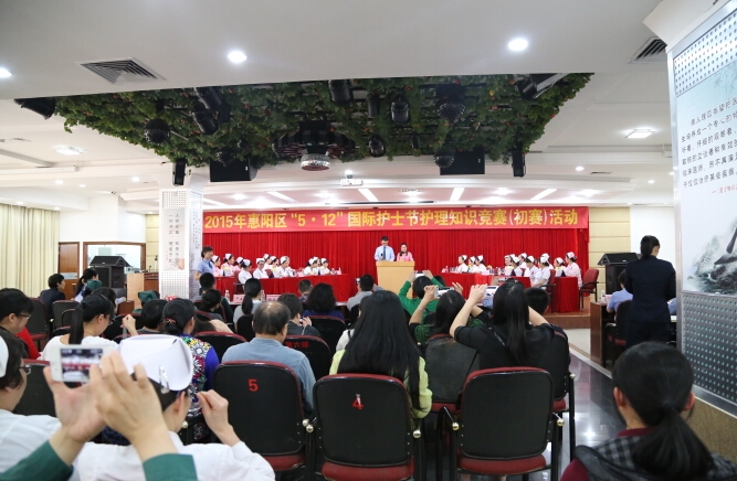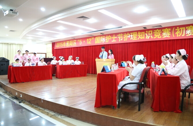 爲了提高我區護理人員護理知識水平和法律法規常識,保證護理安全,2015年4月16日下午,區衛計局在我院多功能(néng)廳舉行了一場别開(kāi)生面(miàn)的“5.12”國(guó)際護士節護理知識競賽(初賽)活動。區衛計局黨委專職副書記劉耀明、人事(shì)股股長(cháng)梁燕萍、醫政股股長(cháng)朱成(chéng)坤以及我院副書記駱立榮、黨辦主任陳桂香等領導及各兄弟醫院的參賽選手、職工代表、我院護理骨幹、護士代表等100餘人出席了本次活動。參賽隊伍有惠陽區各直屬醫療單位、各民營醫院及各鄉鎮中心衛生院、社區衛生服務中心等16家醫療單位。