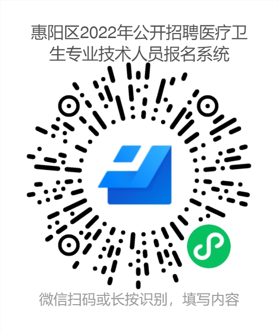 爲适應疫情常态化防控要求,本次招聘采用微信小程序報名,不接受現場報名。考生掃二維碼(附件3)進(jìn)入“惠陽區2022年公開(kāi)招聘醫療衛生專業技術人員報名系統”按要求認真準确填寫報名表(附件4)和其他相關信息,同時(shí)上傳相關報名材料。