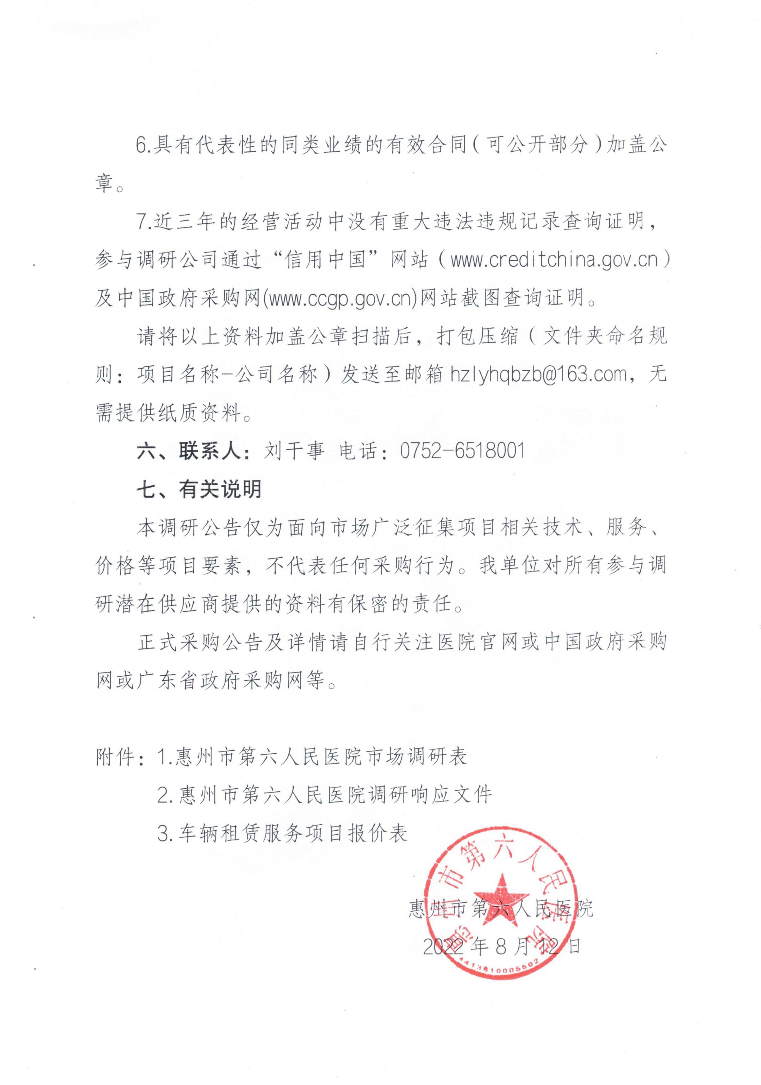 附件1:惠州市第六人民醫院市場調研表(點擊鏈接下載附件)