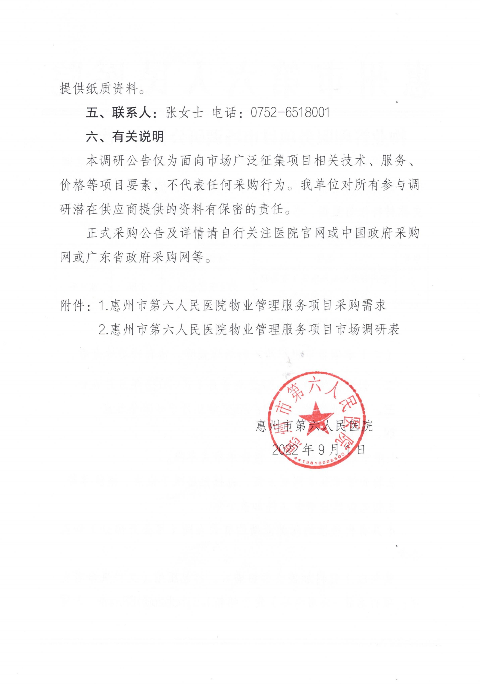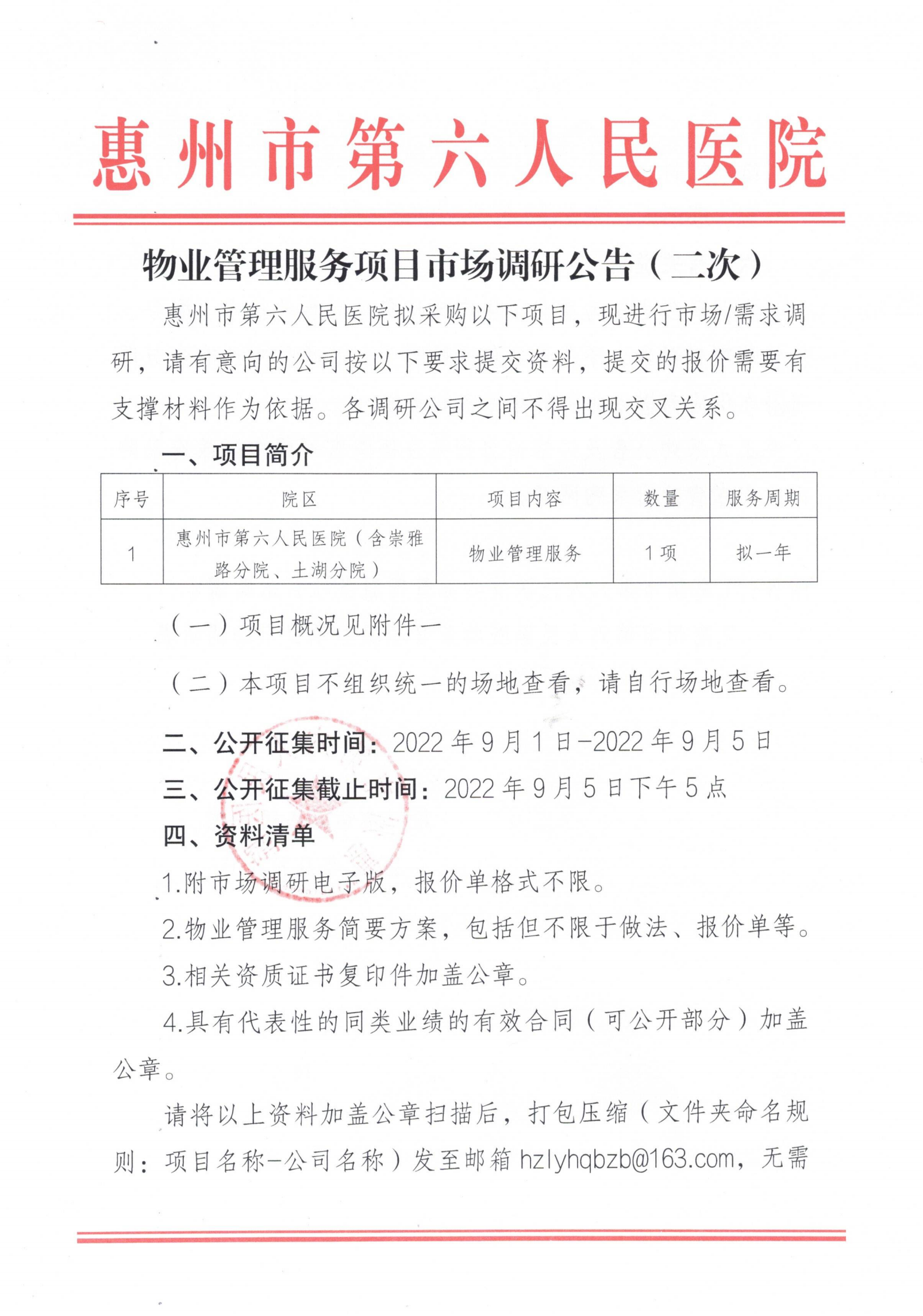 2.惠州市第六人民醫院物業管理服務項目市場調研表