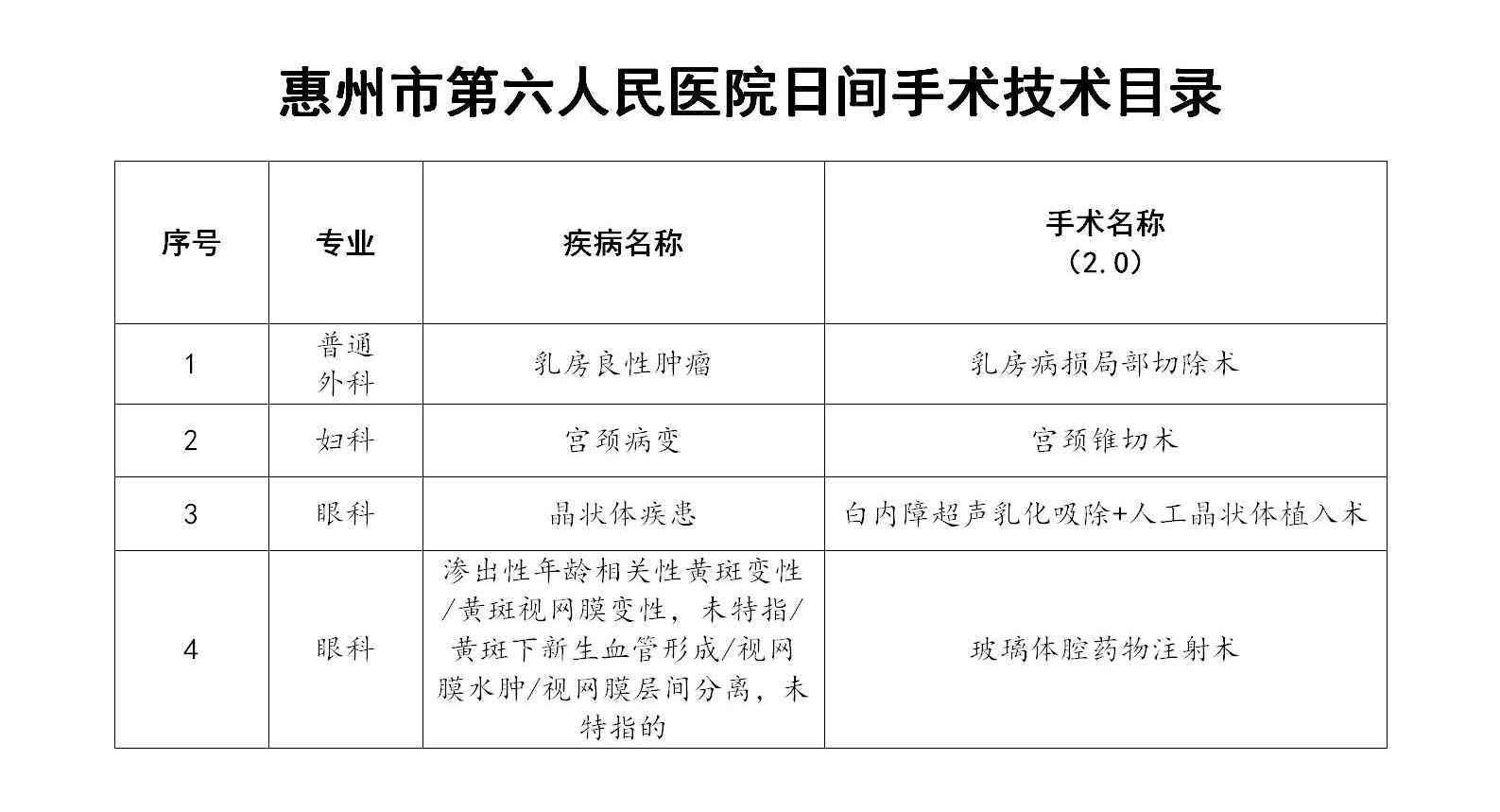 惠州市第六人民醫院日間手術技術目錄