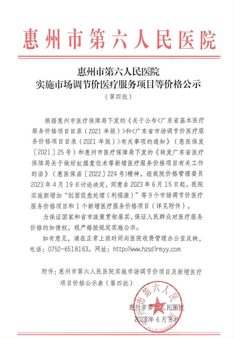 惠州市第六人民醫院實施市場調節價醫療服務項目等價格公示(第四批)