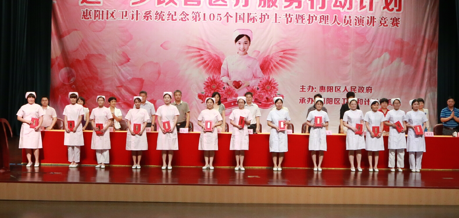 2016年510日,在惠陽區衛計系統舉辦紀念第105個國(guó)際護士節暨護理人員演講競賽中,我院内四科護士曾少娟憑《我驕傲,我是一名白衣天使》演講獲得全場最高分97.17分,奪得此次護理人員演講競賽冠軍。