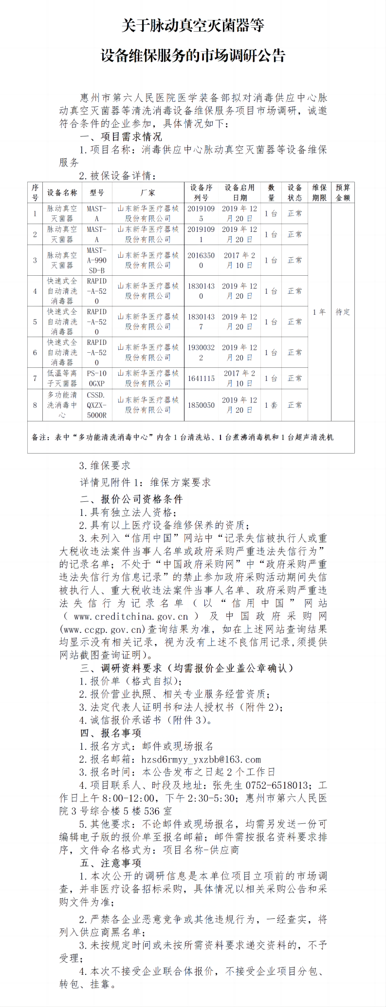 附件:1.消毒供應中心脈動真空滅菌器等設備維保服務方案要求