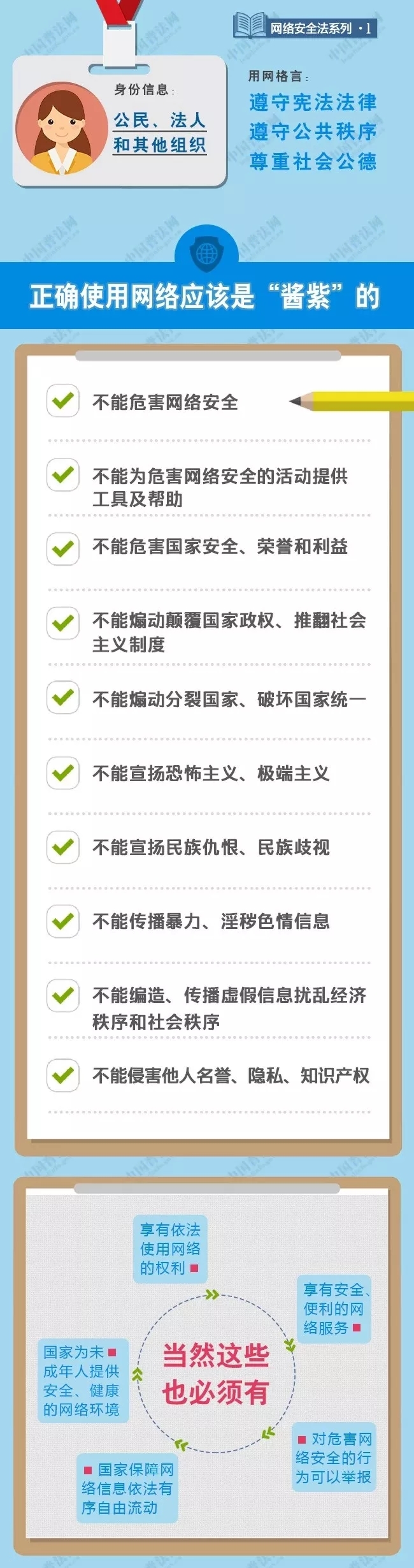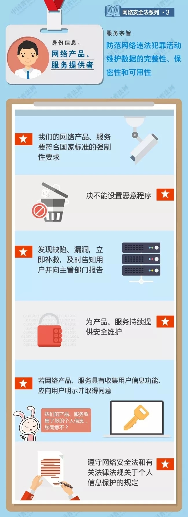 它不僅明确了政府各部門的職責權限,強化了網絡運營者的主體責任,還(hái)對(duì)我們每一個人都(dōu)提出了明确的要求。