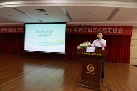 本次學(xué)術會(huì)議專題分爲兩(liǎng)部分。第一部分是“學(xué)科共建三周年總結彙報會(huì)”。餘永強主任首先爲大家進(jìn)行惠州三院與惠州六院學(xué)科共建三周年總結彙報,以圖文并茂的形式,生動詳實地向(xiàng)與會(huì)嘉賓們彙報了神經(jīng)外科學(xué)科共建三周年的成(chéng)績與經(jīng)驗,展示了惠州六院神經(jīng)醫學(xué)中心美好(hǎo)的發(fā)展前景,獲得了與會(huì)嘉賓們的廣泛贊譽。
