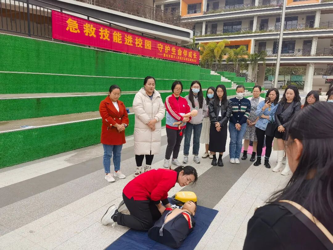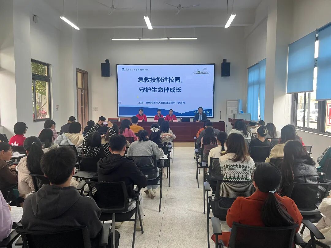 爲提高學(xué)校教師應對(duì)突發(fā)安全事(shì)件的應急救護意識,掌握應急救護技能(néng)。2024年1月17日下午,惠州市第六人民醫院急診醫學(xué)科急救培訓團隊3名導師走進(jìn)華南師範大學(xué)附屬惠陽小學(xué)爲60名教師進(jìn)行急救技能(néng)培訓。