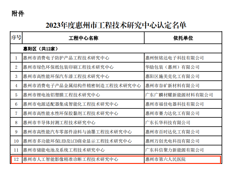 【喜訊】惠州首個醫學(xué)領域工程技術研究中心落戶惠州市第六人民醫院