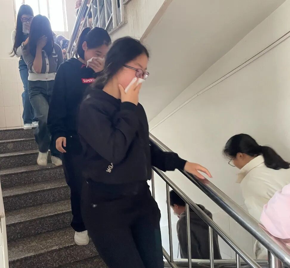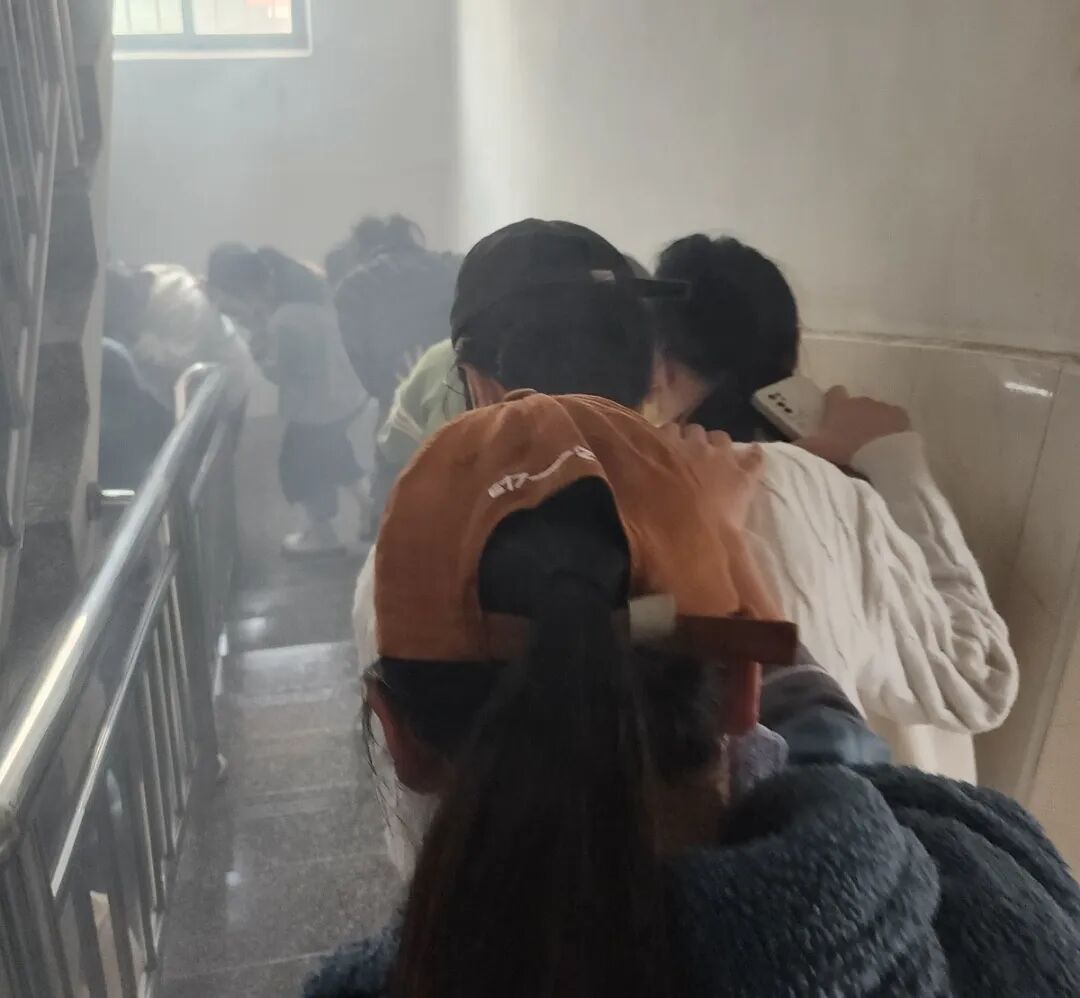 演練于15時(shí)正式開(kāi)始,工作人員在大埔宿舍區7樓以煙霧彈模拟火災發(fā)生現場,參與演練的各樓層實習生按照“彎腰、捂口鼻、貼牆走”的逃生要領,迅速有序向(xiàng)一樓疏散,用時(shí)五分鍾疏散完畢。