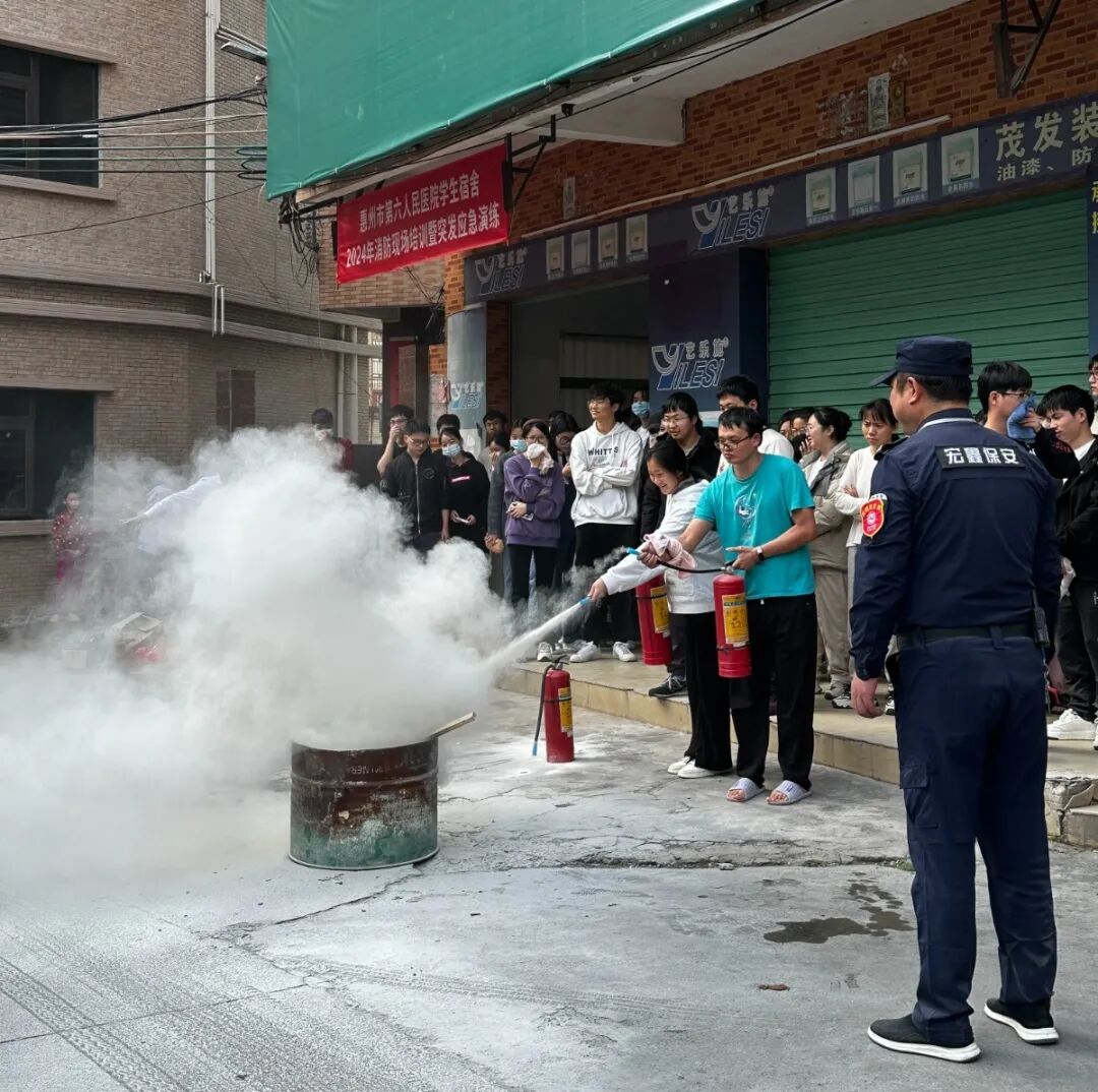 疏散演練結束後(hòu),惠陽區消防救援大隊吳曙珍教官爲大家介紹幹粉滅火器、二氧化碳滅火器的使用方法,并爲大家演示操作流程,由理論培訓轉爲實際操作,實習生們切實體會(huì)“靠近火源風口上2-3米”、“對(duì)著(zhe)火苗根部進(jìn)行噴掃”等滅火器使用要領,進(jìn)一步提升撲滅初期火災能(néng)力。