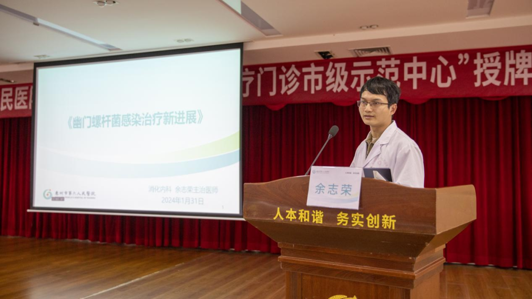 揭牌儀式後(hòu),我院消化内科餘志榮主治醫生講授《幽門螺杆菌感染治療新進(jìn)展》,分享最新指南和診治進(jìn)展。